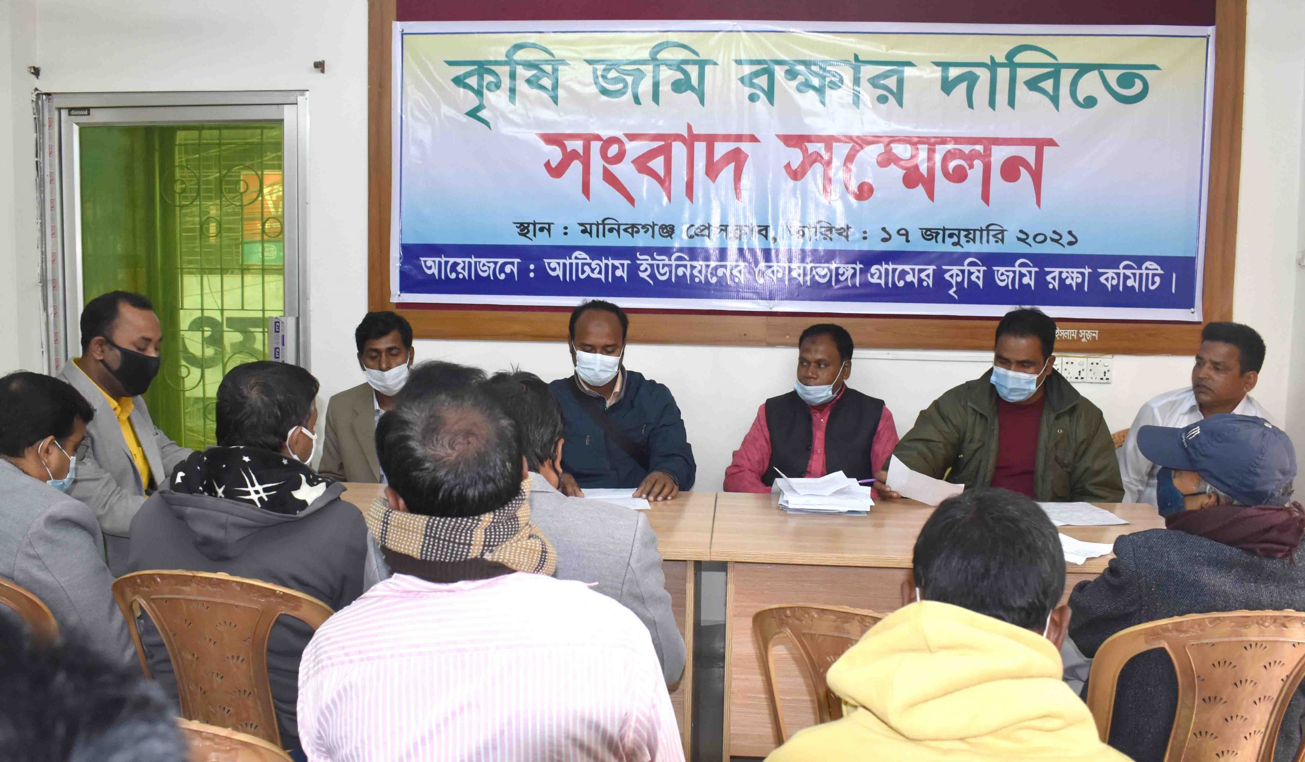 মানিকগঞ্জে তিন ফসলি কৃষি জমি রক্ষার দাবিতে সংবাদ সম্মেলন অনুষ্ঠিত হয়েছে।