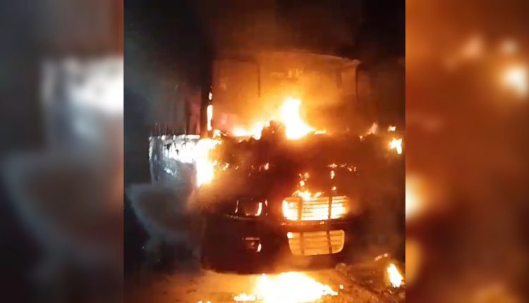 শিবালয়ে মধ্যরাতে স্কুলবাসে আগুন, গুরুতর দগ্ধ চালক