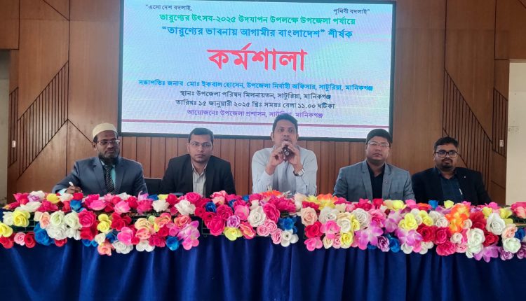 তারুণ্যের ভাবনায় আগামীর বাংলাদেশ শীর্ষক কর্মশালা বুধবার দুপুর ১ টার দিকে সাটুরিয়া উপজেলা পরিষদের হলরুমে অনুষ্ঠিত হয়েছে।