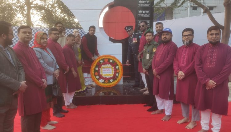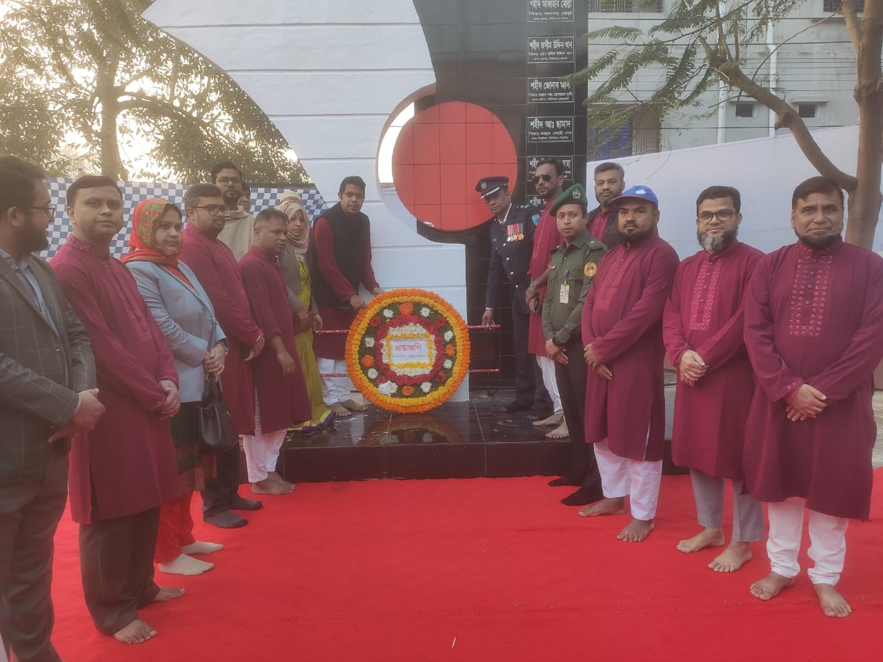 মঙ্গলবার সকাল ৭ টার দিকে উপজেলা পরিষদ চত্তরে শহীদ স্মৃতিস্তম্বে পুস্পস্তবক অর্পন করা হয়।