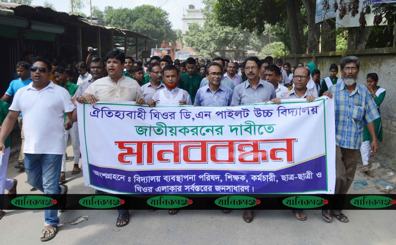 মানবন্ধনে এক হাজার শিক্ষার্থী, অভিভাবক এবং এলাকার সর্বস্তরের মানুষ অংশ নেয়।