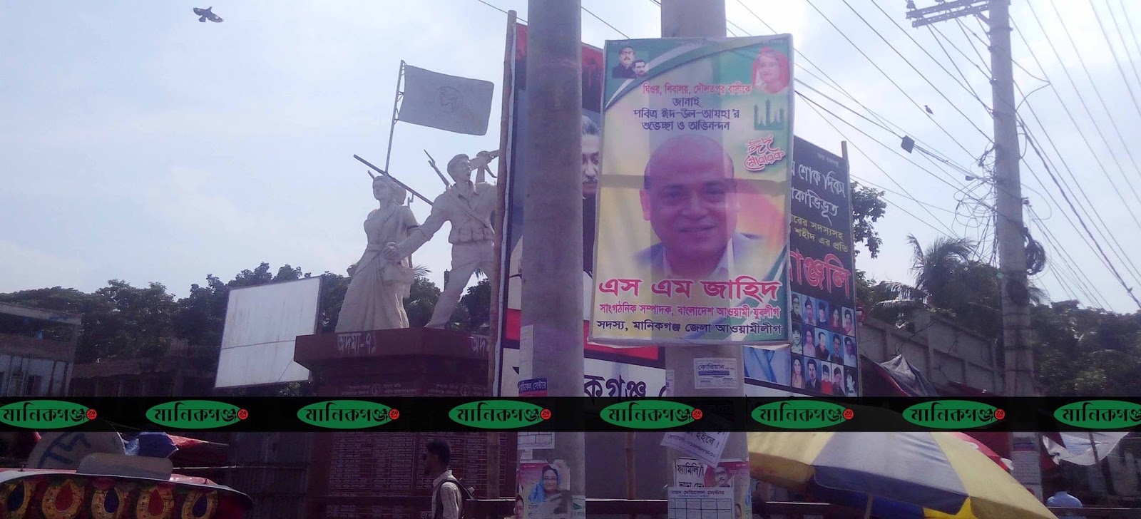 ফয়জী: মানিকগঞ্জে অধম্য ৭১ বছর জুড়েই ব্যানার ও ফেস্টুনে ঢাকা থাকে । মানিকগঞ্জ বাস