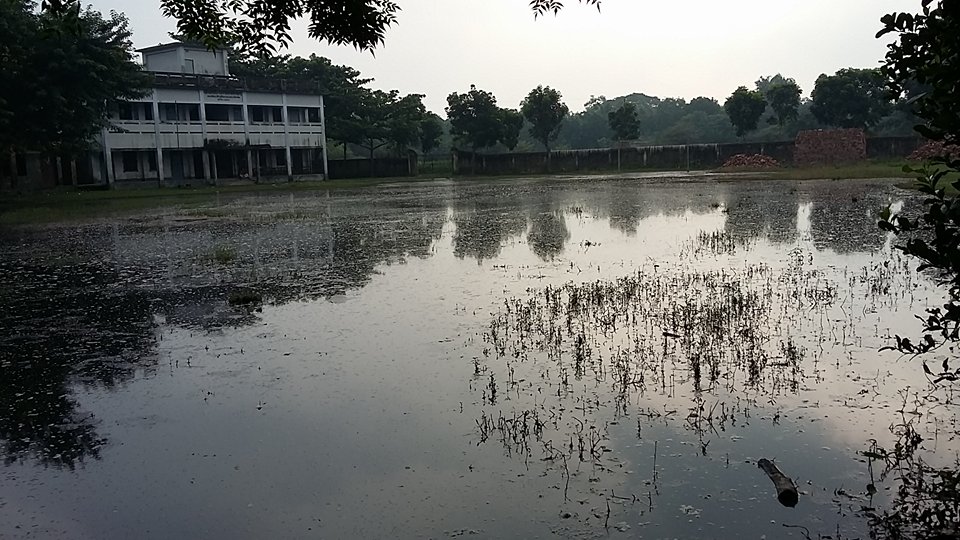 ফারিরচর হাজী জহিরউদ্দিন দারুস সালাম দাখিল মাদ্রাসার মাঠে বৃষ্টি নামলেই এখন